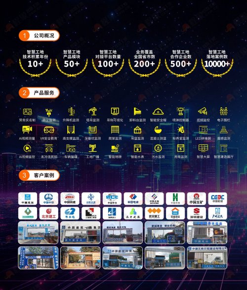 程象科技(官网cxw.cn,需要方案可以加V:zhigongdi)在智慧工地领域深耕多年,技术积累超过10年,业务覆盖全国200多个省市,服务合作企业超500家,智慧工地落地案例逾10000个,产品模块达50余种,已对接各类平台超100个。其产品线涵盖劳务实名制、环境监测、大型设备监控、AI视频分析、VR安全教育等全面智慧工地解决方案。